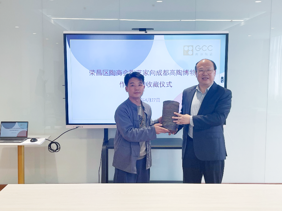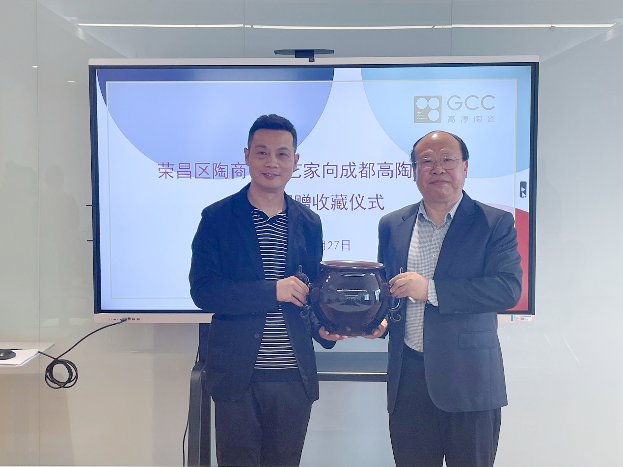 4月27日上午,重慶市榮昌區陶商會(huì )向成都高陶博物館捐贈藏品儀式在博物館報告廳舉行。