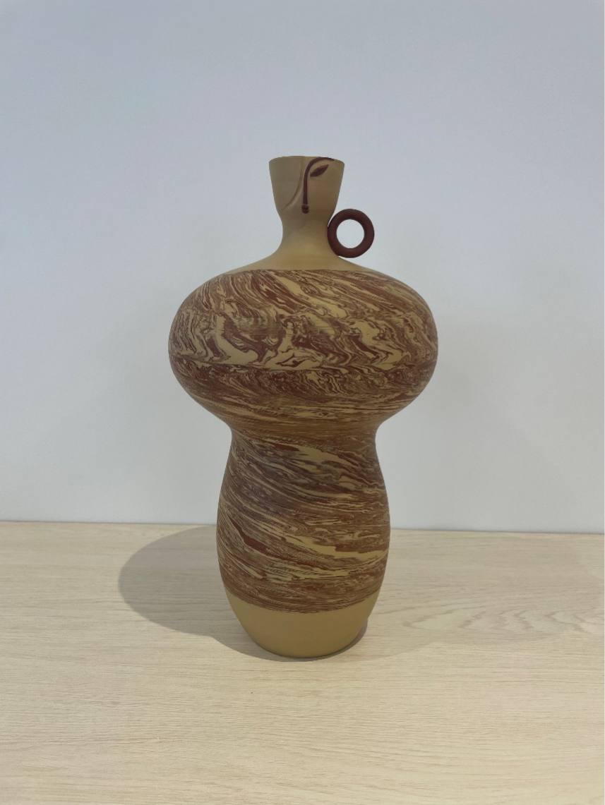 作者:劉吉芬《榮昌陶朱砂釉雙耳罐》